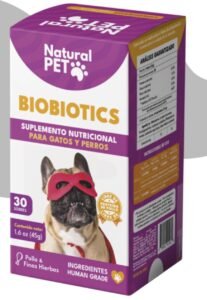 BIOBIOTICS es un suplemento alimenticio de uso animal elaborado por Natural PET by FNL. Está diseñado y formulado en base a ingredientes completamente naturales para equilibrar la flora/microbiota intestinal de perros y gatos. Contiene 3 cepas de probióticos, lo que favorece la absorción de nutrientes y posee la capacidad de modificar la composición de microflora intestinal dañina a otra beneficiosa.
