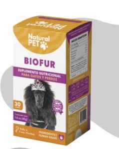 BIOFUR es un suplemento alimentario natural para especie felina y canina formulado por Natural PET By FNL. Está elaborado en base a vitaminas, minerales, ácidos grasos omega 3 y una alta concentración de ingredientes 100% naturales, que lograrán una correcta mantención de la salud de la piel y pelaje, aportando además nutrición, bienestar y soporte en casos de que existan deficiencias nutricionales.