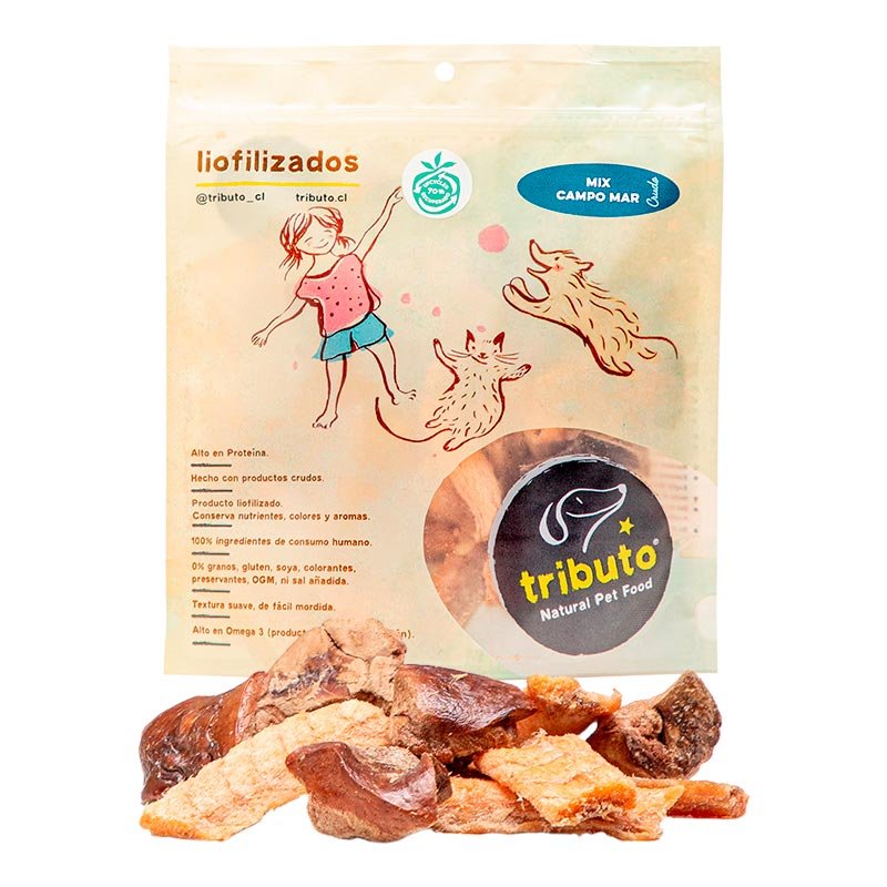 Trozos crudos liofilizados que conservan el 95% de los nutrientes originales. Trozados o enteros, listos para disfrutar en su comida o como premio.
