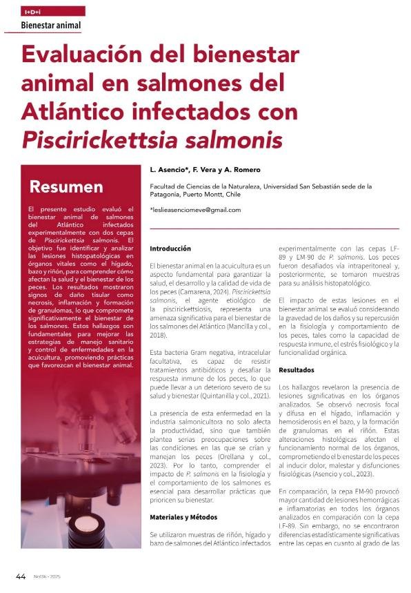 Evaluación del bienestar animal en salmones del Atlántico infectados con Piscirickettsia Salmonis