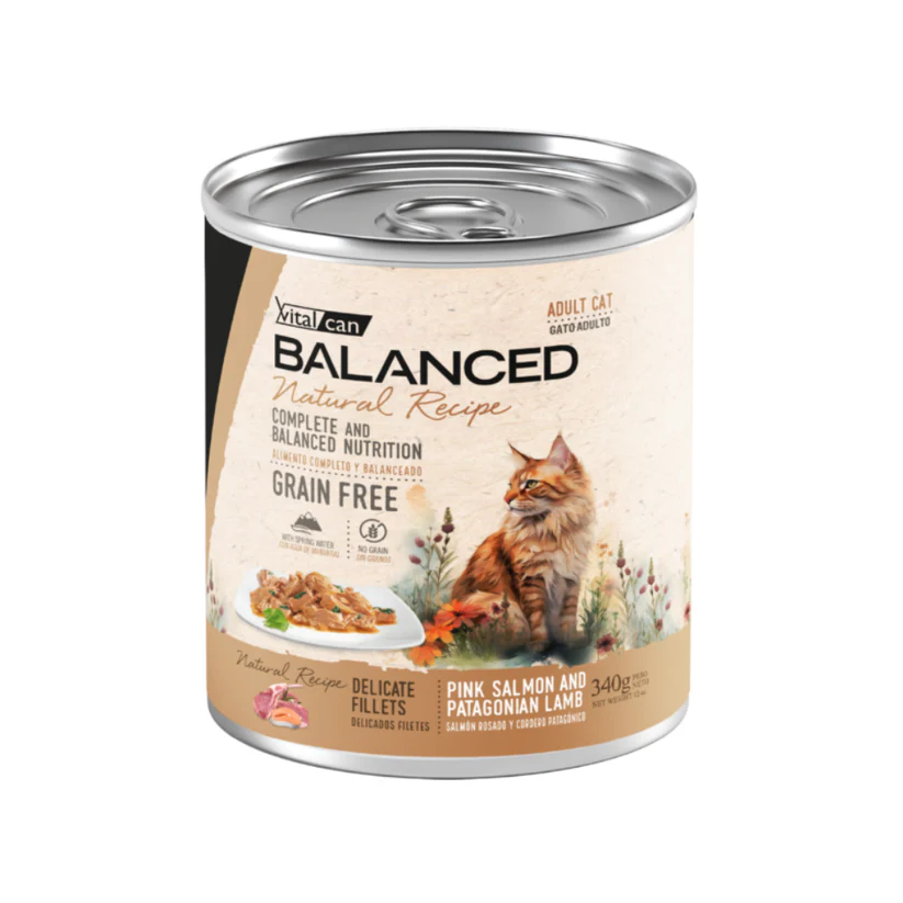 Balanced Natural Recipe Delicados Filetes de Salmón y Cordero es un alimento húmedo indicado para gatos adultos de todos los tamaños. Una deliciosa receta a base de salmón y cordero que contribuye a reducir las reacciones alérgicas a otras fuentes de proteína. El plus de Omega 3 contribuye a mantener la salud intestinal y cutánea.