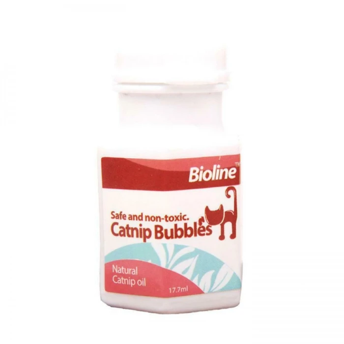 Catnip Bubbles para gatos: burbujas con hierba gatera natural que estimulan el juego y la diversión de tu gato. Su fórmula segura permite crear burbujas que tu mascota puede perseguir, y la tapa incluye un aro especial para soplarlas fácilmente.