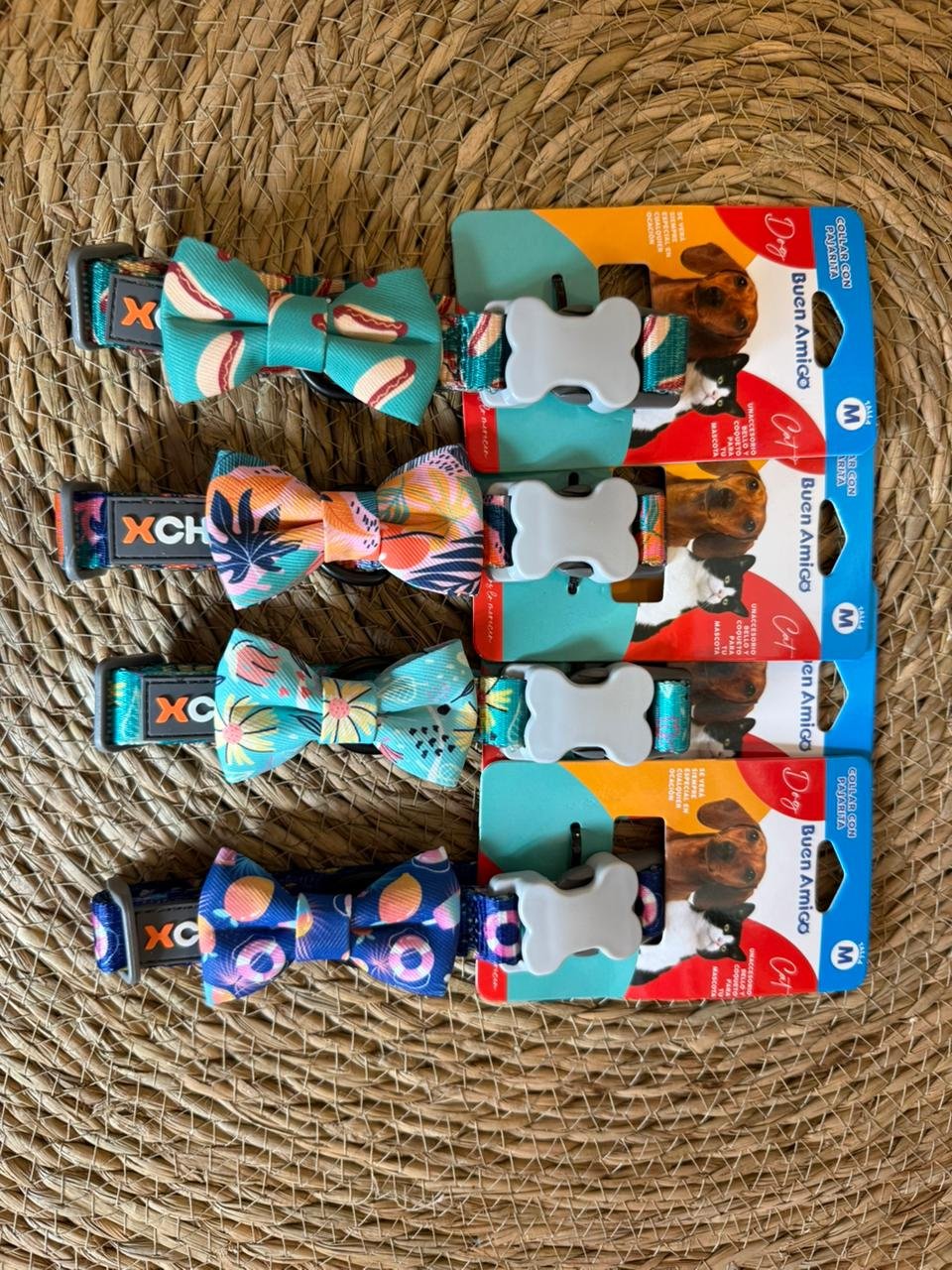 Collar para mascotas con diseño moderno y elegante, ideal para perros y gatos. Incluye un práctico accesorio tipo corbatín que aporta un toque único y distintivo. Fabricado con materiales resistentes y de alta calidad, cuenta con cierre seguro y ajuste cómodo para el uso diario. Perfecto para paseos, ocasiones especiales o simplemente para que tu mascota luzca increíble.